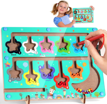 Montessori Educación Temprana Reconocimiento de Color Número Clasificación Laberinto Magnético Bolígrafo Guiado Laberinto de Cuentas y Tablero de Conteo